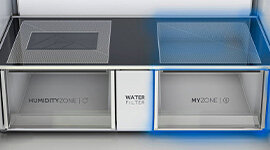 The My Zone adjustable temperature drawer has three settings - use it for fruit and vegetables, to store meat or seafood at their ideal temperature, or when you need extra storage for drinks.