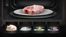 Time and Weight Defrost functions are designed to thaw ingredients evenly and efficiently. By entering the food type and weight, the microwave automatically calculates the required defrosting time. This controlled process helps maintain texture and flavour while preparing ingredients for cooking.
