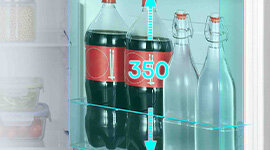 A big door balcony lets you safely store bigger and taller items inside the door. It can handle bulky cartons of milk and juice, or even two rows of cans or bottles of drink.