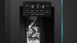 The in-door ice and water dispenser can produce 2.2kg of ice for the whole family in a half day. Without opening the fridge door, you can choose between ice cubes, crescent ice, crushed ice or chilled water.