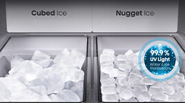 The freezer features a dedicated compartment capable of making two sizes of ice – cubed and nugget – at the same time. Its generous capacity ensures there’s always plenty to go around.