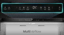The user-friendly digital control panel enables you to easily change the temperature inside the fridge or freezer and activate special functions, such as the Eco mode for saving energy, with the touch of a button.