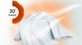 Quick 30 mode dries light loads up to 1 kg - approximately three shirts - in just half an hour, providing fast, convenient drying when you need your clothes ready in a pinch.