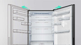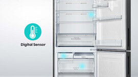 Multiple internal temperature sensors monitor changes throughout the fridge and freezer, helping the inverter compressor adjust cooling performance for consistent, efficient results.