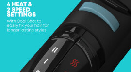 Four temperature options and two speed settings, including a cool shot button, allow personalized control for different hair types and styling needs.