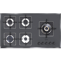 | Features | ● 8mm black tempered glass surface ● All four edges with elegant diamond-edged finish ● Single handed electronic ignition ● Easy clean removable burners and supports ● Colour: black glass ● Made in Italy ● Flame failure safety device fitted to all burners ● Cast iron adaptor for wok ● Cast iron reducer for small pans ● Highly efficient Brass burners |