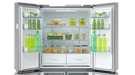 An LED e-control display enables you to make changes without having to open the fridge. Rapid freezing & cooling functions enable you to quickly and easily snap-cool grocery shops.