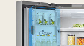 Air vents located in the front ceiling of the fridge direct cold air onto items stored in the top door baskets, ensuring rapid cooling and helping maintain freshness for items stored in the door.