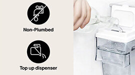 Enjoy ice and water without plumbing. The convenient dispenser lets you keep everyone refreshed - simply top it up for instant access to cold water and ice, right from the door.
