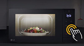 | Features | Control Panel: Touch Control Interior Finish: Anti-Bacterial EasyClean™ Interior Coating. Design: Slim Design Turntable: Yes, mm Glass Turntable. Lighting: Internal LED Lighting. Door Opening: Push Button (corner position) Manual Cook Modes: 4 ( Meat, Poultry, Fish, Bread) Reheat Function: 3 ( Chilled Meat, Frozen Meal, Chilled Pizza) Cooking Function: 8 ( Popcorn, Potatoes, Beverages, Fresh Vegetables, Frozen Entree, Bacon, Rice/Pasta.) 10 Power Levels: 90w, 180w, 270w, 360w, 450w, 540w, 630w, 720w, 810w, 900w. |