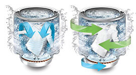 Six washing motions powered by the Inverter Direct Drive Motor creates six optimised cycles to wash fabric, combined with Power Motion enhanced performance and TurboDrum rotation.