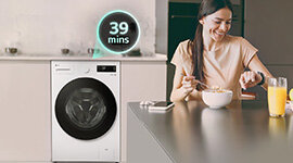 Wash 5kg of clothes in just 39 minutes. With water jets operating during the wash and rinse, this machine can wash a 5kg load of lightly soiled clothes in just 39 minutes.