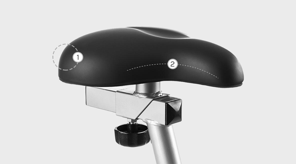 The saddle is wide and gives you additional comfort with its thick cushioning. You can adjust its position to get the right fit for your body.