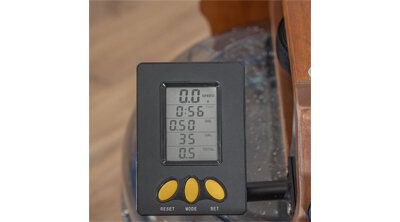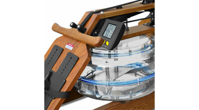 The machine uses a water chamber to emulate on-water rowing, providing a natural and consistent experience from the very first stroke.