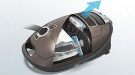 This is Miele’s most efficient exhaust filter. HEPA stands for High-Efficiency Particulate Arresting. It’s the recommended filter choice for people with allergies, because it traps even the tiniest pollutants. These filters have been proven to retain more than 99.95% of dust particles. The air that is processed through this filter and expelled by your vacuum is more hygienic than the air surrounding you.