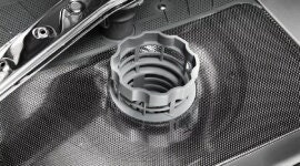 Collapsible plate racks, an adjustable upper basket, and a removable cutlery basket make loading simpler and more adaptable. This flexible layout helps accommodate larger cookware, taller glasses, and mixed daily loads with greater ease and efficiency.