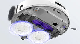 Two rotating mops mimic manual scrubbing with consistent downward pressure. They tackle sticky spills and stubborn stains while automatically lifting when transitioning onto carpeted areas.