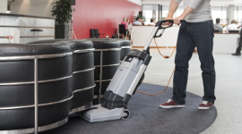 This Scrubber/Dryer cleans efficiently by scrubbing with the solution and then drying in a single pass, making the surface safe to walk on immediately with no drying time needed.