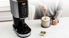 One-touch programmes combine speed, pressure, and time to perfectly shave through your frozen tub. Choose from Ice Cream, Sorbet, Milkshake, Lite Ice Cream, Gelato, Smoothie Bowl, and Mix-in options.