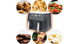 DualZone Technology offers two options: Smart Finish, cooking two foods in different ways that finish simultaneously, and Match Cook, syncing settings across zones for 9.5L capacity meals with ease.