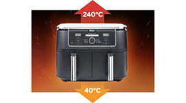 Featuring six versatile preset programmes (Max Crisp, Air Fry, Roast, Bake, Reheat, and Dehydrate) this air fryer ensures optimal results with an Auto Adjust Fan and Variable Speed Control.