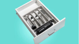The NutriBullet Immersion Blender Deluxe Set is designed for easy storage, featuring a slim, compact build that fits comfortably in your silverware drawer. Enjoy powerful blending performance without cluttering your kitchen space, keeping essentials within reach for effortless meal prep.