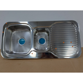 | Features | 2 piece, bowls & drainer seam welded l 304 grade, 18/10 polished stainless steel (0.8mm thick) Inset recommended Adjustable clips and sealing foam supplied 2 x 90mm basket wastes included |