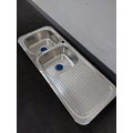 | Features | 2 piece, bowls & drainer seam welded Inset recommended Adjustable clips and sealing foam supplied 2 x 90mm basket wastes included |