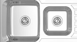 The larger bowl of this sink boasts a 30-litre capacity, large enough to accommodate the grandest pots and pans.