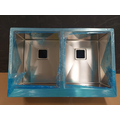 This sink would make a great statement piece in any modern kitchen. The square basket wastes will capture any solid food scraps in your bowl and, although the bowls are square by design, their soft radius corners make for easy cleaning.