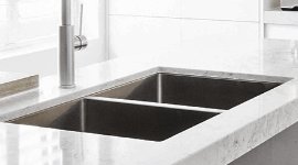 As these twin sink bowls are designed to attach to your benchtop’s underside, they can help to draw the eye to the quality of benchtop’s surface itself. As this means greater exposure of the benchtop to water, undermount installation is best suited to waterproof benchtop materials such as stone.