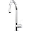Sleek, curved profile offers both style and function, with a high arc that easily accommodates large pots and pans.