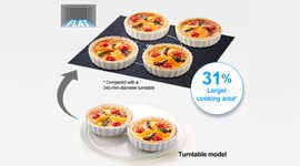 Thanks to the microwaves use of inverter technology, there is no need for a cooking turntable. This allows you to make more use of the available space and heat bigger dishes with ease.