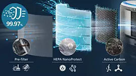 Captures 99.97% of ultrafine particles, including dust, allergens, bacteria, viruses, and gas pollutants, ensuring cleaner, safer indoor air for your entire family.