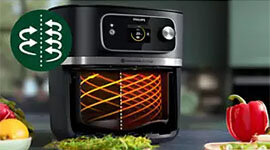 Combines dynamic dual airflow with a starfish base to circulate heat evenly, delivering crispy outsides and tender insides with less oil and 40% faster cook times.