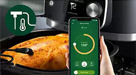 Offers guided cooking with intelligent presets and an integrated thermometer for precise temperature control—ideal for perfectly cooked meats and custom doneness.