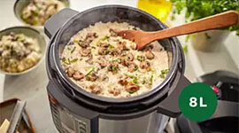 The generously sized 8 L pot is perfect for cooking up to 14 servings, making it ideal for big families, entertaining guests, or batch cooking large meals for the week with fewer rounds of preparation.