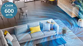 Double-fan Performance: Twin-fan system delivers 1.5x more power, achieving 600 m³/h CADR to purify large rooms up to 156 m² and clean 20 m² in less than five minutes.