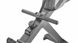 This rowing machine folds easily after each use and is equipped with four wheels for fuss-free transportation and storage.