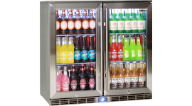 This outdoor fridge can fit up to 240 standard 375ml cans giving you plenty of room to store all your favourite soft drinks and beers. This model has two glass doors so you can separate and display your beverages.