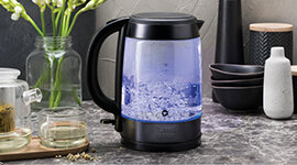 Make a style statement on your countertop by brightening up your kitchen with every boil. The blue illumination not only looks striking but also lets you know when the kettle is on and boiling.