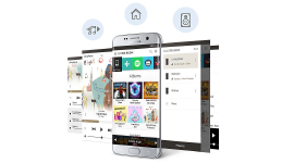 The Samsung Multiroom app for smartphones and tablets allows you to easily control all of your wireless Samsung sound devices. Provided they’re all connected to your wireless network, you can control what’s playing on the kitchen speaker, and simultaneously turn down the sound coming from your TV Soundbar.