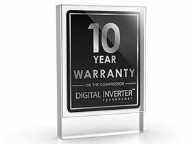 Enjoy the peace of mind that comes with the 10 Year parts warranty on the Digital Invertor compressor.