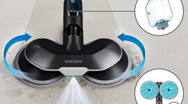 Care for your hard floors with the Spray Spinning Sweeper. Dual rotating pads gently polish while a built-in water tank provides consistent moisture. Reusable microfibre pads offer an eco-friendly way to lift stubborn grime, giving your floors a smooth, polished finish.