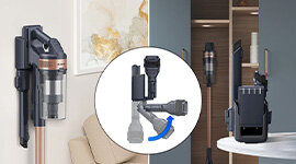 Store and charge your vacuum cleaner flexibly with the two-in-in charging station. It can be easily mounted on the wall to save space or used as a stand-alone charger with the removable battery.