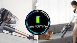 No need to rush while vacuuming! A powerful battery maintains suction for up to 40 minutes of uninterrupted cleaning. You can purchase a spare battery to extend your cleaning time to 80 minutes.