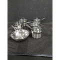 | Features | - High Quality 18/10 stainless steel - Oven-safe to 220/250 deg cel with/without lid - Optimal 6.4mm thick bonded base - Inside mirror polish - Handles secured with rivets - Tempered glass lids - Internal capacity markings and rolled rims for drip-free pouring - Suitable for all cooktops including induction |