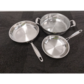 | Features | High Quality 18/10 stainless steel Oven-safe to 220/250 deg cel with/without lid Optimal 6.4mm thick bonded base Inside mirror polish Handles secured with rivets Tempered glass lids Internal capacity markings and rolled rims for drip-free pouring Suitable for all cooktops including induction |