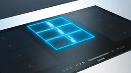 Siemen cooktops with flexInduction Plus automatically extends heating zones in two directions. If one zone is too small, more inductors activate for even heat. Perfect for large pots, teppanyaki plates, or griddles, it offers exceptional freedom for creative and versatile cooking.