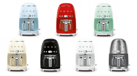 Smeg are as attentive to form as they are to functionality, presenting an aesthetic inspired by the pop art movement and iconic Italian design. When these drip machines aren’t busy brewing, they can be shown off and coordinated with the other small appliances in their family. From subdued pastels to more intense, popping tones, there’s a finish to suit every personality.